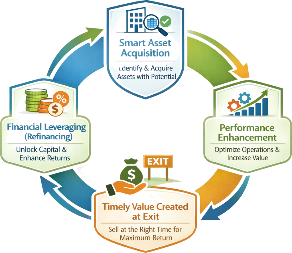 ROI maximisation: Acquire → Improve → Refinance → Exit